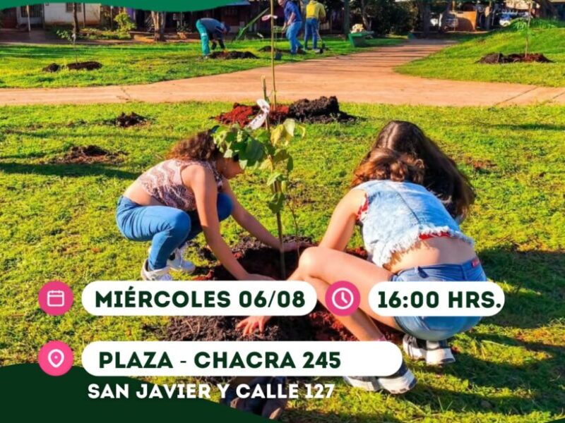 En el marco del programa “Barrios Más Verdes”, la Municipalidad de Posadas invita a los vecinos de la chacra 245 a sumarse a una nueva jornada de forestación urbana que se llevará a cabo el miércoles 6 de agosto a las 16:00 horas en la plaza ubicada en San Javier y calle 127.