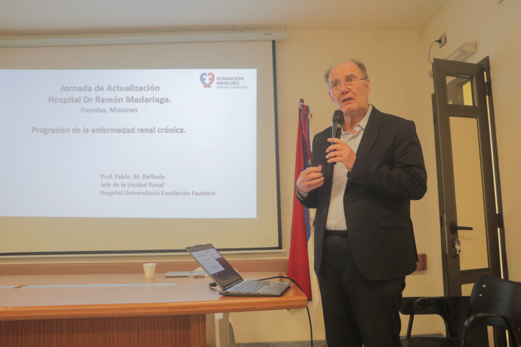 En el marco de una Jornada de actualización y tratamiento de la progresión de la Enfermedad Renal Crónica (ERC), el Hospital Madariaga se convirtió en el epicentro de una importante disertación a cargo del Dr. Pablo Raffaele, Jefe de la Unidad de Nefrología de la Fundación Favaloro de Buenos Aires.