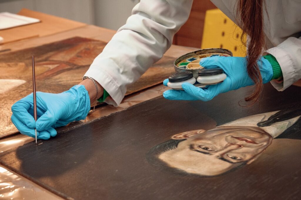 El análisis de las piezas incluye un informe en detalle de los materiales que la componen. La ficha técnica de cada obra contiene información sobre los marcos, las bases de tejido, madera u otro sistema rígido, el tipo de pigmento que se utilizó, los barnices protectores y los sistemas de sujeción con dimensiones y antigüedad. Para el análisis y mantenimiento de las obras se emplean lupas, microscopios, pinzas y otras herramientas especiales, pinturas, barnices y bases que tengan una composición química igual o similar a la original.