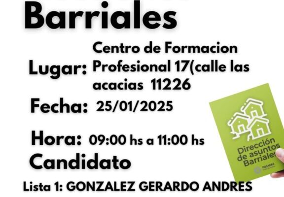 El candidato de la Lista 1, González Gerardo Andrés, se presenta para representar a los vecinos y vecinas de la zona, con propuestas orientadas a la mejora de la calidad de vida en la comunidad.