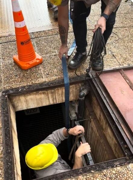 Los trabajos, a cargo del Área de Mantenimiento de Subestaciones, incluyen el desagote de las cámaras afectadas por la acumulación de agua producto de filtraciones. Además, se realiza la limpieza de las zonas comprometidas y la inspección de los bornes de media y baja tensión, con el objetivo de prevenir posibles riesgos para los vecinos y garantizar el normal funcionamiento del servicio eléctrico.