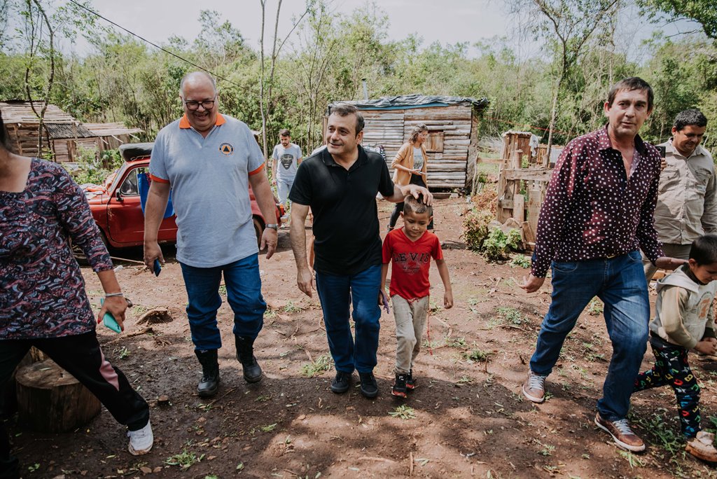 Esta mañana, el gobernador Oscar Herrera Ahuad recorrió las zonas afectadas por el temporal en la localidad de Mártires, dirigiendo las tareas de asistencia a las familias damnificadas.