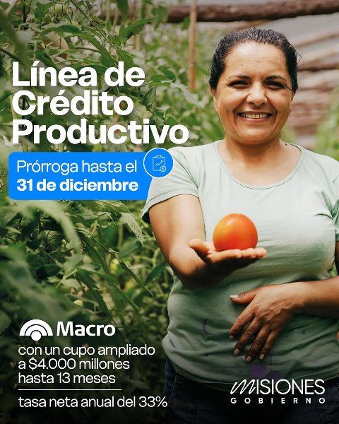 Por un lado, se prorroga la línea de crédito productivo de corto plazo, con un cupo ampliado a $4.000 millones, destinada a capital de trabajo, con un plazo de hasta 13 meses y una tasa neta anual del 33 %, bonificada por el Gobierno provincial.