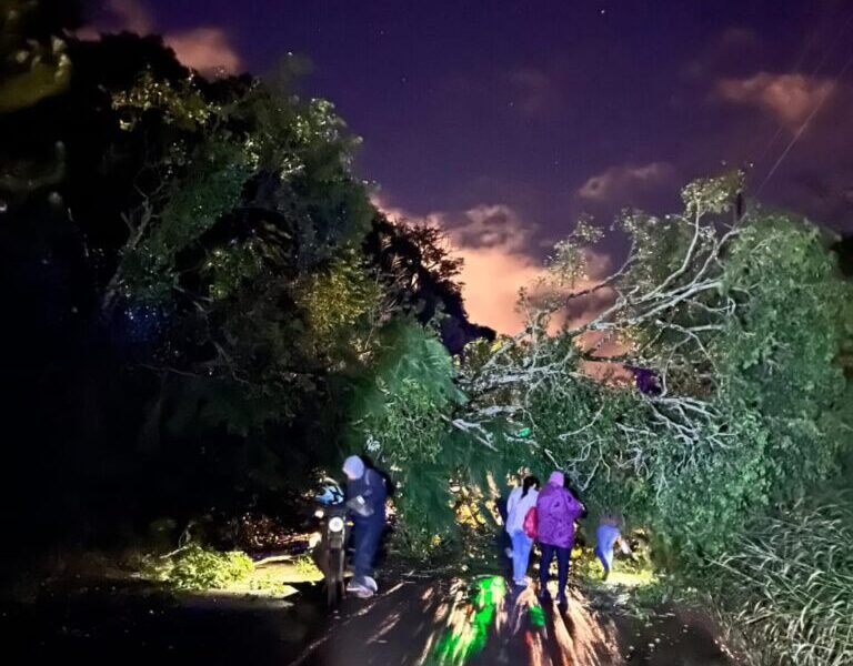 Ya en la madrugada de este lunes, en Oberá, se registró un accidente con lesionados leves sobre Av. Pincén, tras la caída de un árbol nativo. Un auto Renault 12 y una motocicleta Rouser colisionaron contra el mismo. Los tres ocupantes —Ramón V. (59), Cinthia C. (37) y José M. (33)— fueron trasladados al hospital local. Bomberos Voluntarios trabajaron con motosierras para liberar la vía.