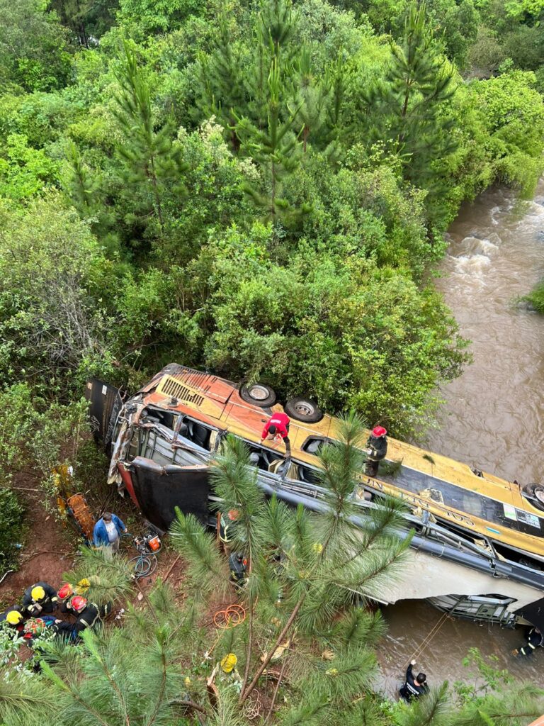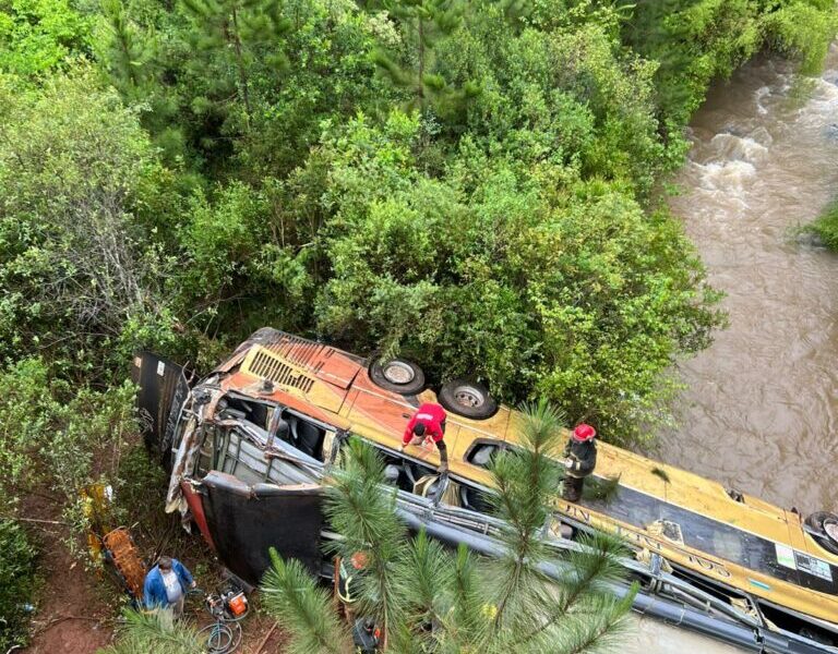 Un grave siniestro vial se registró en la madrugada de este domingo sobre el kilómetro 892 de la Ruta Nacional 14, entre Oberá y Campo Viera, donde un colectivo de larga distancia colisionó con un automóvil y terminó cayendo al arroyo Yazá. Como saldo, se confirmaron víctimas fatales y varios pasajeros heridos. La ruta permanece totalmente interrumpida debido a las tareas de rescate.